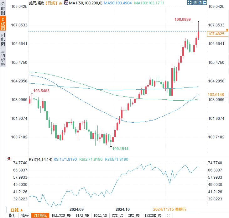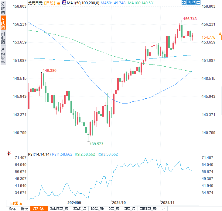此外,市场对美联储12月降息的预期正在减弱。尽管通胀有所回落,但经济持续增长和潜在的财政扩张使得联储可能选择延迟放松政策,这进一步推动了美元的强势表现。